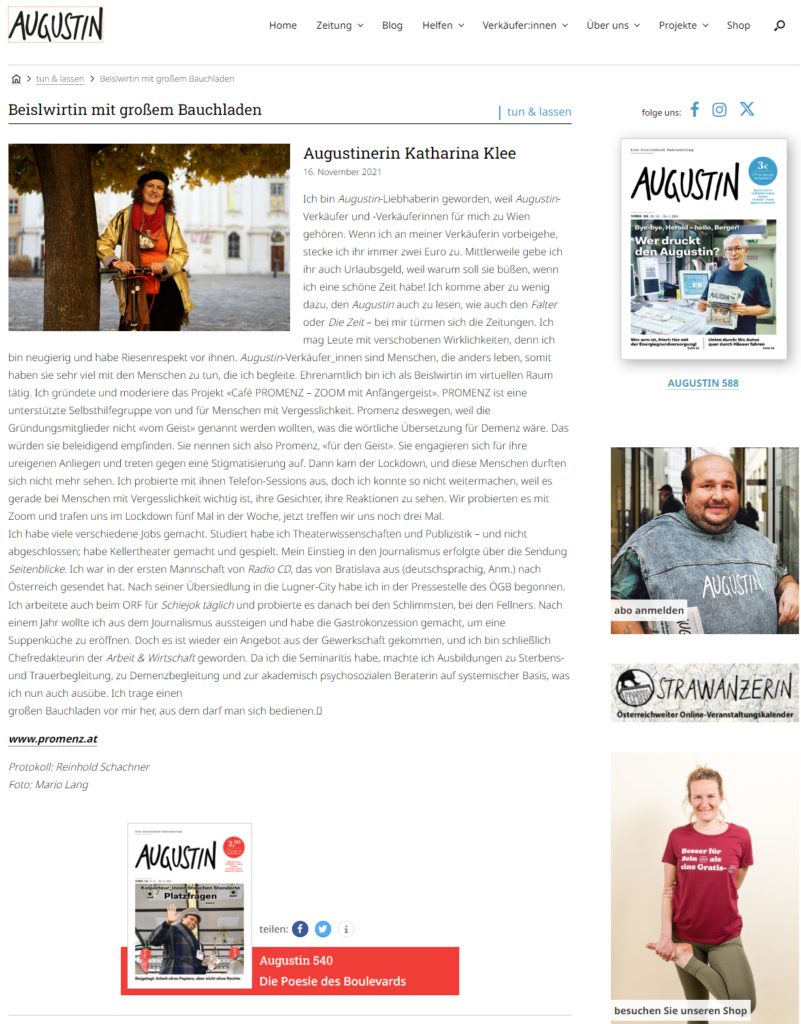 Katharina Klee in der Wiener Straßenzeitung „Augustin“